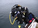 After everyone returned excited about the good conditions on the bottom I geared up and jumped in with the camera. The visibility was a nice 20-25 feet but a little dark due to the overcast skies we had all day up above. I didn’t look at the temperature but other divers reported 40 F. I spent my dive playing with the camera and didn’t venture very far as the engines on the EMERALD are very pretty all by them selves. I spent about 45 minutes tooling around on the bottom and if it wasn’t for my leaky drysuit I probably could have gone a little longer and looked for some lobsters.