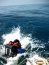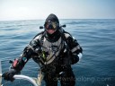 Having drug my camera around for all this, I went through the motions of snapping a couple shots on the wreck but I figured deco was the only place it would do me any good and I got shots of all the other guys coming down. Deco was relaxing as it was very warm and absolutely no current. The surface conditions were also beautiful and it was like a lake. Really a great day to be on the water. It was the first trip to the U-869 for some and they were just glad to be out here diving New Jersey’s most famous wreck. Some lobsters were rescued, and most of the guys even had a visitor for deco entertainment… a 20 foot basking shark came by to say hello.