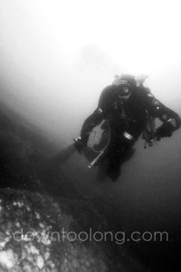 Got to dive the “last armored cruiser”, the USS SAN DIEGO, off the Independence II. Since the only other time I was here didn’t work out too well I was excited to get to see the wreck proper. We had a full boat but it seemed like everyone managed to find a bunk or deck space to nap on the relatively long haul to the wreck. Two other boats were on the wreck but the Lockness guys were kind enough to let Bill head down their line with our chain so he could tie in. Conditions were consistent with what they’ve been in the past couple weeks with the string of hurricanes… nice on top, slop on bottom. Oh well, the SAN DIEGO comes 30-40 feet off the bottom so it was kind of a “choose your own adventure” type of dive. On top of the wreck it was about 20 feet of bright vis and warm. Dropping down it got darker and colder and I found the bottom when I hit it (and still could’nt see it).
