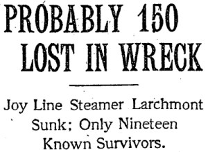 On February 11th, 1907 the schooner HARRY KNOWLTON collided with the side wheel steamer LARCHMONT sending 143 souls to their icy water filled graves in what was one of the largest maritime disasters at the time. Over a hundred years later the skeletal remains of the side paddles, a reminder of transportation of many days past, still rise proudly over 20 feet off the silty bottom of Long Island sound, a slowly fading monument to the unfortunate travelers that cold day in February.