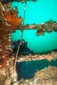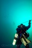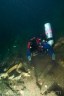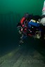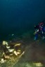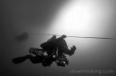 We headed towards the stern and took some time to check out the lead ingots that were part of the cargo when the ship was sunk in the remains of the holds. Followed the prop shaft all the way aft but did not find the prop. There was an interesting little “house” off the stern. I guess it is the remains of the gun tub / deck house because it had what looked like a gun mount on top (no gun). There were several porthole backing plates still in place but look like they need a lot of work. With the way these WWII wrecks are deteriorating it probably wont be long til they fall out. Water temperature was 60 F on the bottom and 65 near the surface. During deco we had a visit from the Thief of Baghdad… As I realized my reel had mysteriously found its way from my hip to my butt D-ring, I looked up to spot the masked man victimizing my buddy. Luckily I was able to catch the perp on film.