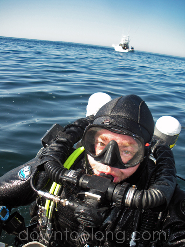 After a second dive on the OCEAN VENTURE, we pulled hook and started heading inshore. After dinner (fresh lobster) we stopped at the JOHN MORGAN for a night dive. This was my first time on this 423′ Liberty Ship, which sank in a collision in WWII. She was carrying war supplies, which included vehicles, tanks, airplanes, and tons of munitions which now lie scattered over the sea floor in 110 fsw. Visibility was maybe 15 feet and had a great dive. At one point there was a stingray swimming over a pile of munitions which would have made an awesome picture, which is what always happens when I leave the camera on the boat. Overall a very interesting dive with plenty to see and I’d love to get back to spend some more time exploring.