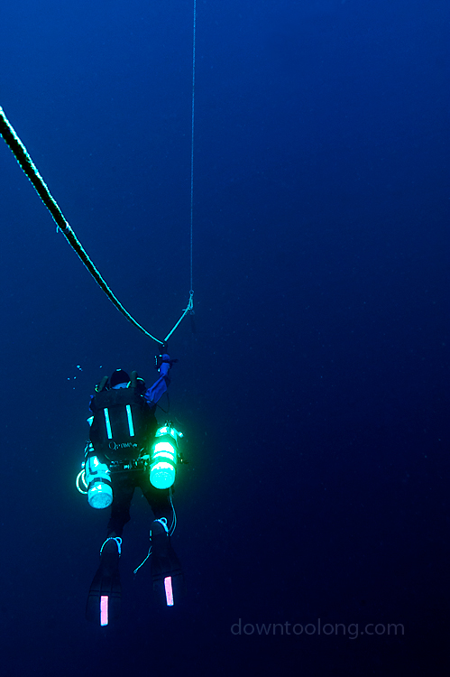 Dan Martinez decompresses after a dive on the USS MURPHY