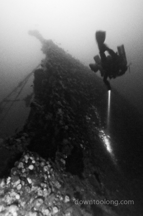 The stern of the SOMMERSTAD is intact and rises high off the bottom