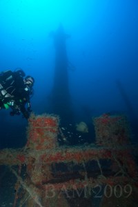 On the Oil Wreck we had a nice 15 foot of visibility if you got away from the tie in where the chain was fouled up in a nest of ropes and old lines that sent up clouds of silt as it bounced. We were tied in just forward of the bridge section which has deteriorated dramatically in the past couple years. Had a nice leisurely dive swimming the entire bow section and even poked in the focsle which I hadn’t had the chance to do before. One of my favorite wrecks and I can’t wait to get back.