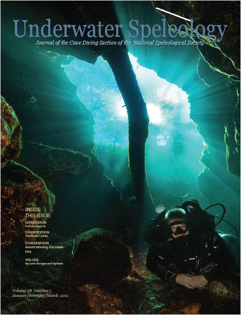 Cover of Underwater Speleology March 2011 (Bill Trent at Cow Spring)
