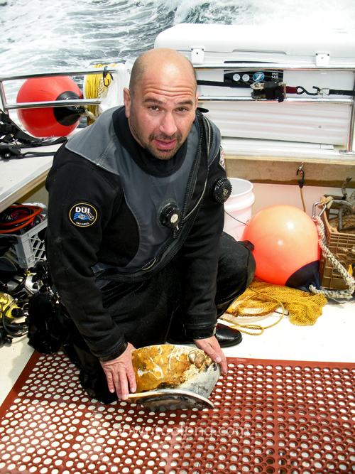 Dan Bartone with a large porcelain bowl recovered from the AYURUOCA (Oil Wreck) June 19, 2011