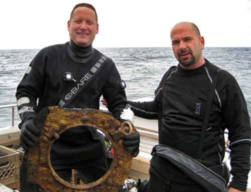 Mark Clark and Capt Dan Bartone with porthole from a trip on 10 June 2007