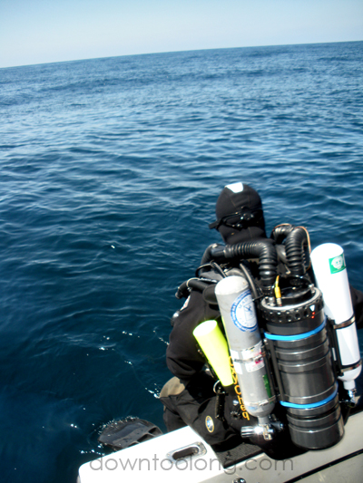 Any gets ready to splash… Notice the oil slick in the bottom left which is still leaking from the wreck