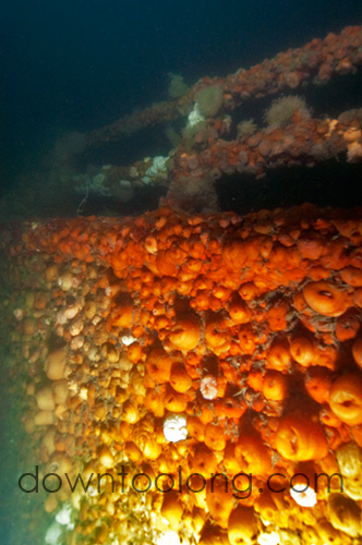 Colorful anemones adorn the stern of the IOANNIS P. GOULANDRIS